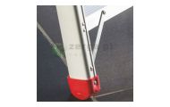 Stopnie 13 cm z pełnego profilu nigdy się nie zdeformują. Podłużnice drabiny wykonane zostały z wytrzymałych, otwartych profili aluminiowych o przekroju 80 x 35 mm. Zastosowano solidne krzyżowe stabilizatory w elemencie tylnym. Platforma robocza z grubej, perforowanej blachy. Aluminiowe podłużnice połączone są ze stopniami za pomocą nitowania (w opatentowanej technologii lotniczej) i dodatkowych wsporników przy pierwszym stopniu. Technologia lotnicza daje gwarancję ponadprzeciętnej trwałości połączenia.